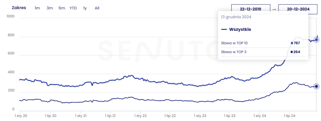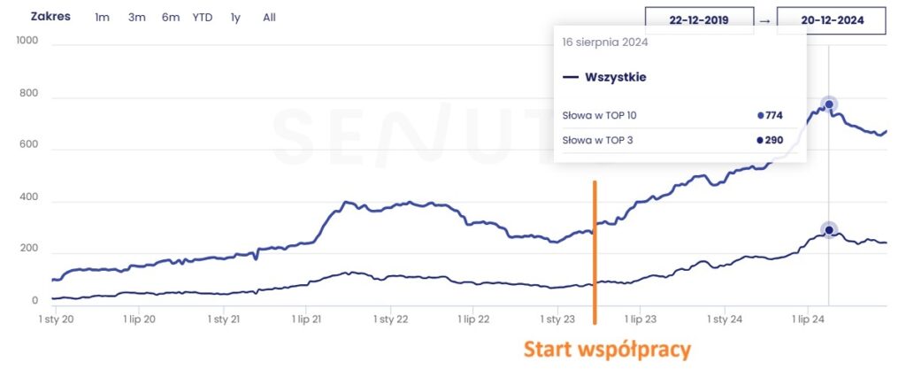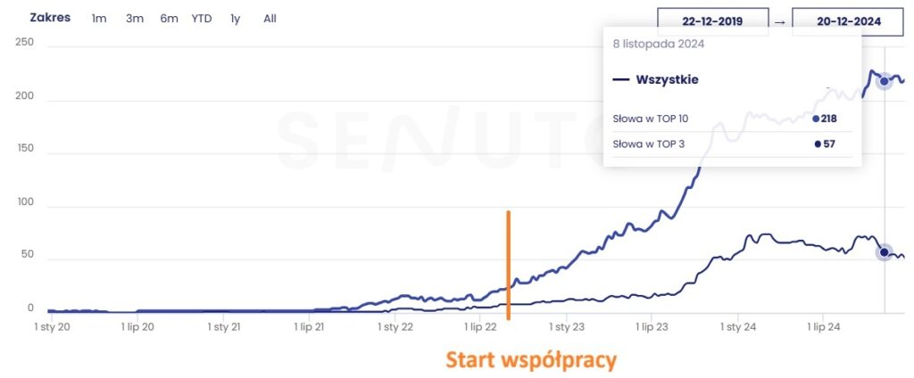 +500 słów kluczowych w TOP10 na przestrzeni 1,5 roku.